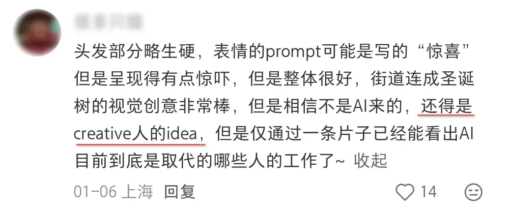好好好,以后用AI做广告,比拼的不是谁用的AI工具多,而是谁的提示词写得足够骚气有创意。因为,显然,这支广告,还是以人的创意主导+AI画面打辅助。