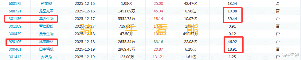 12月18日(周四)林泰新材解禁比例达到46.92%。