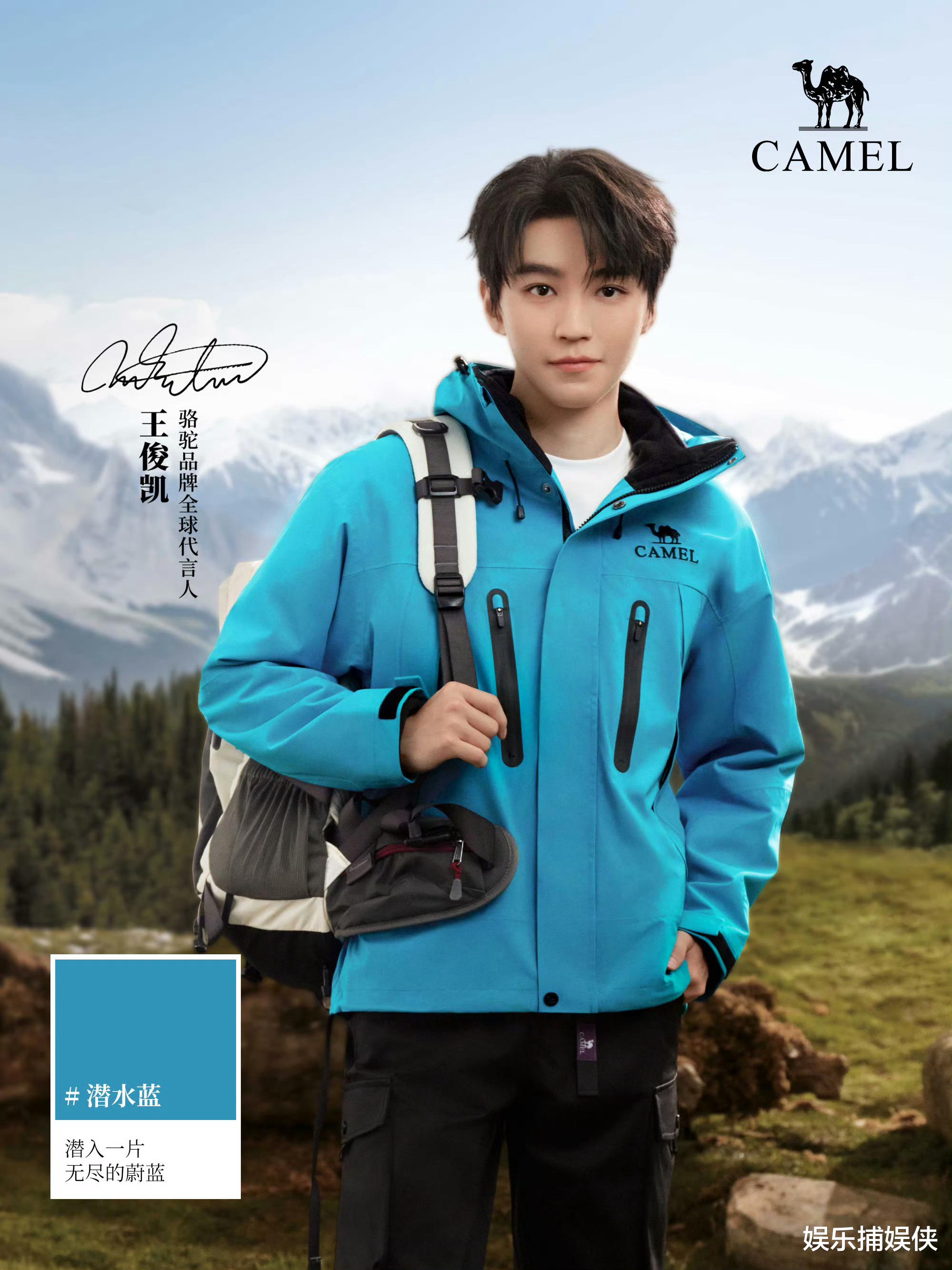 提到骆驼家最会“搞事情”的代言人,非王俊凯莫属。2024年,他被官宣为全球代言人时,一袭“王者凯甲”冲锋衣惊艳亮相,瞬间吸引了无数年轻人的目光。这款冲锋衣堪称“六边形战士”:防水指数高达33,927mmH₂O,透湿指数超过18,570g/m²×24h,还能抵御8级大风。粉丝们调侃道:“小凯这波操作,让北面、始祖鸟都得集体慌神!”更绝的是,王俊凯穿着这款冲锋衣登山的照片一经发布,立刻引发了“户外打卡潮”。网友们戏称:“跟着凯哥走,爬山不迷路,还能GET同款‘战甲’!”