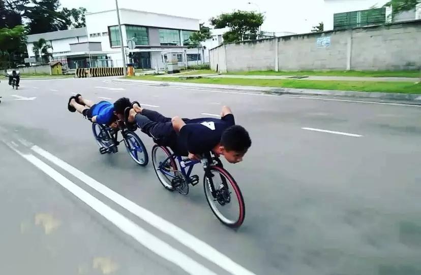 什么是“蚊型自行车”呢,就是飙车少年们为了追求刺激,把自行车的刹车给拆了,车把也改得很低,车灯也不装。而他们的骑车方式也很特别,不是坐着,而是整个人趴在车架上,双腿向后伸直做出俯冲的姿势。因为骑行的时候姿势像吸血的蚊子,所以叫做蚊型自行车。
