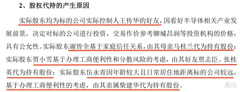 但令人不解的是,既然实控人王传华明知其好友存在代持行为,为何不在启动重组前进行清理?另外,此前的回复中,除了简要介绍了代持原因,对这些实际股东的履历背景并未详细披露。