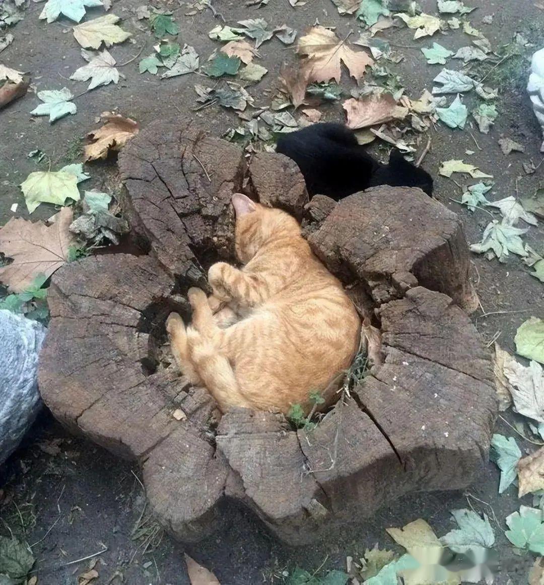 第4张:《小猫的安逸》:小猫在树桩中的安逸,是它最舒适的家。