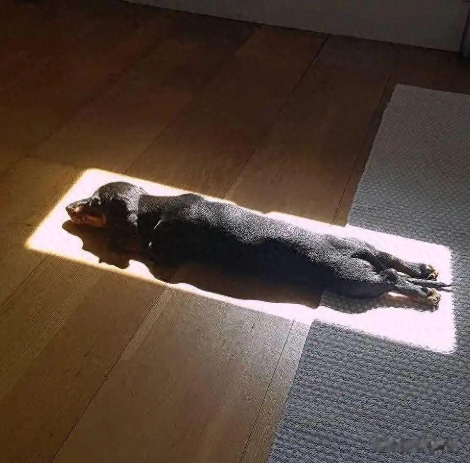 第1张:《日光浴的小狗》:小狗在客厅的地板上晒日光浴,没有浪费一点阳光。