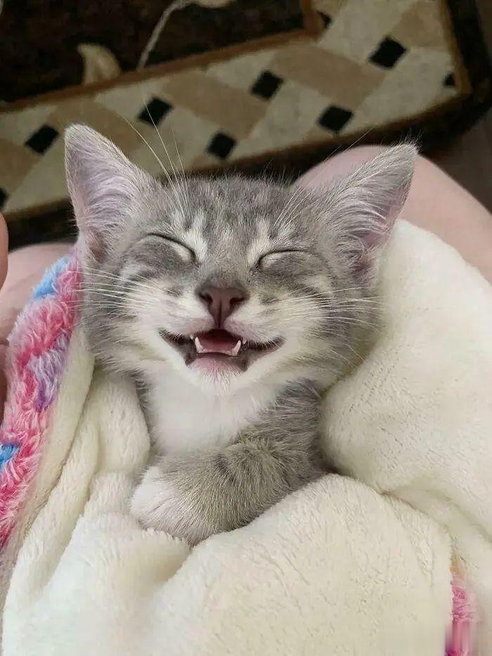 第16张:《小猫被收养》:小猫很高兴被收养,露出了治愈人心的笑容。