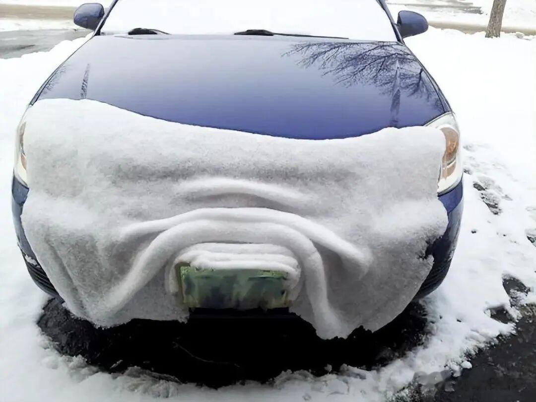 第3张:《雪的温暖》:雪落在朋友的引擎盖上,滑落得如此自然,宛如一条温暖的毯子。