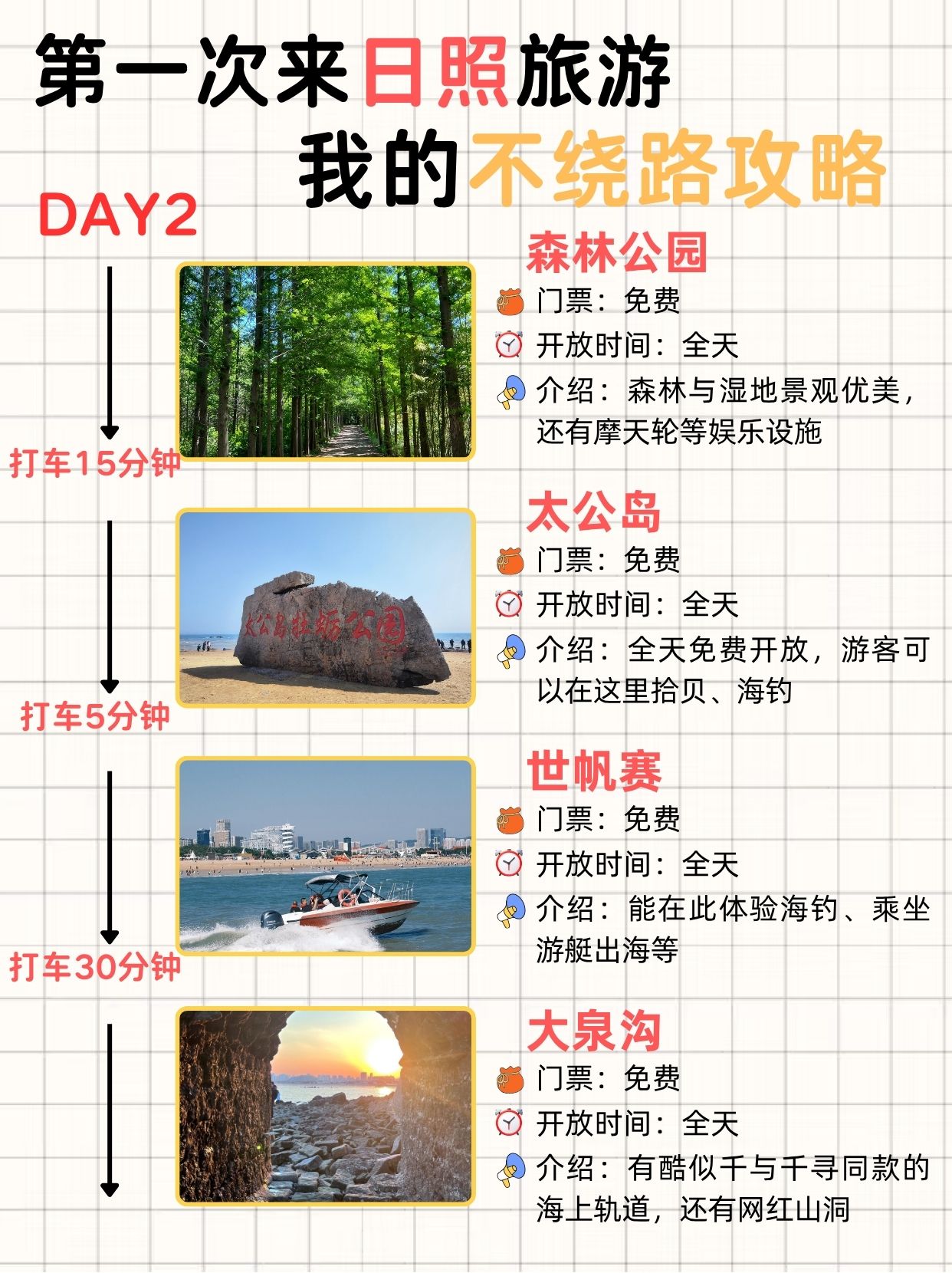 📍Day2 森林公园→太公岛→世帆赛基地→大泉沟📍Day3 桃花岛→植物园→任家台礁石公园→泻湖