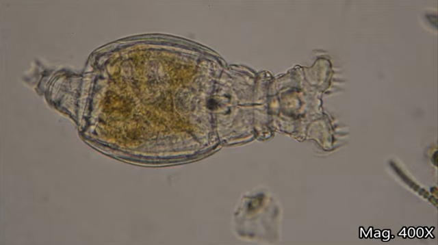 桶状体,大有趣:轮虫等“极端生存者”可以通过进入一种称为“滞育”(diapause)的休眠状态,在干燥环境中存活多年。它们会变成类似“桶状体”或“干胞体”(tun 或 xerosome)的形态,图中这个可能就来自轮虫种类 Macrotrachela quadricornifera