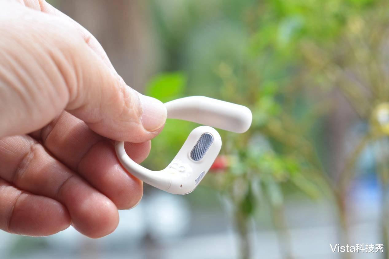 南卡Wing采用航空级记忆钛丝骨架和镂空声学腔体设计,单耳仅重8克,佩戴无重压感,基于20000+耳廓数据,建立BioLock稳态仿生结构支撑,加上开放式设计,不入耳耳压与外界平衡,造就这款开放式耳机轻、透、稳的特性,佩戴跑步、运动都非常稳固不会脱落。