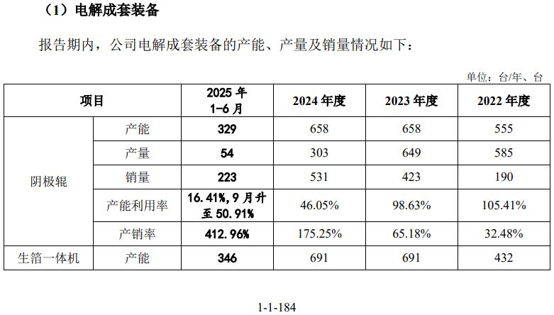 与此同时,泰金新能的核心产品阴极辊产能利用率在2024年和今年上半年不算高,2024年仅维持在50%,在今年上半年则跌至16.41%,9月回升至50%左右;生箔一体机产业也是类似情况。
