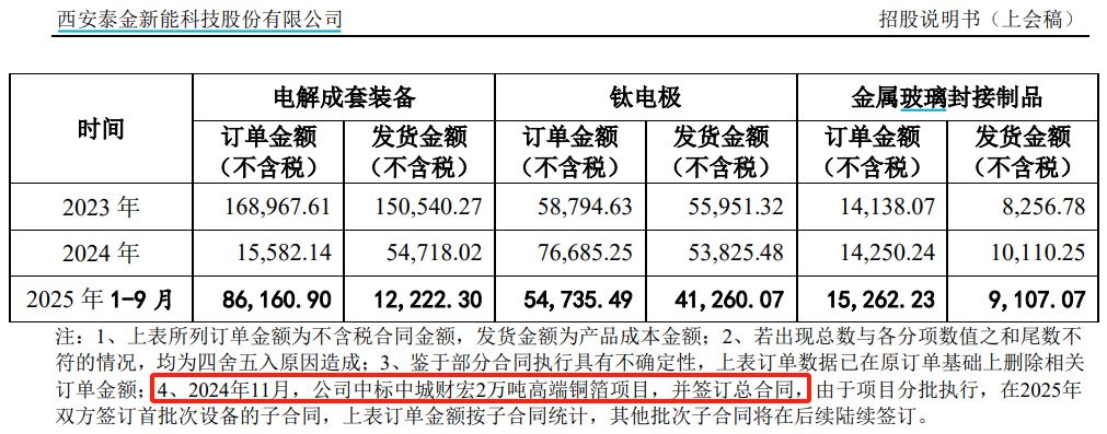 另据招股书第273页披露,2024年11月,公司中标中城财宏2万吨高端铜箔项目,并签订总合同,由于项目分批执行,在2025年双方签订首批次设备的子合同,销售产品涉及阴极辊、生箔一体机、表面处理机及相关配套产品,金额达14536.64万元。招股书第354页还披露,中城财宏新建铜箔项目办公楼、宿舍、1号厂房目前已封顶,正在开展装修工作,首批次部分设备已发至现场,计划2025年12月进行生产调试。