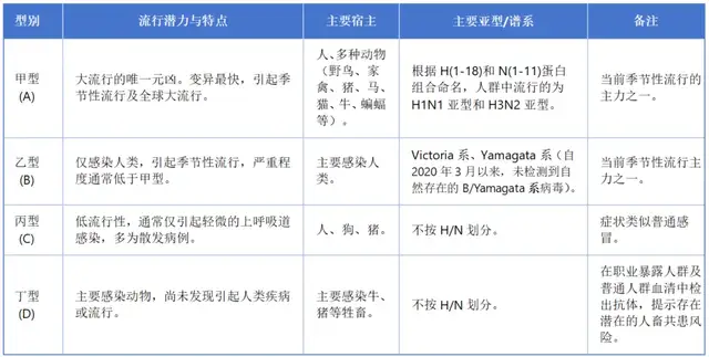 不同流感类型的特点区分