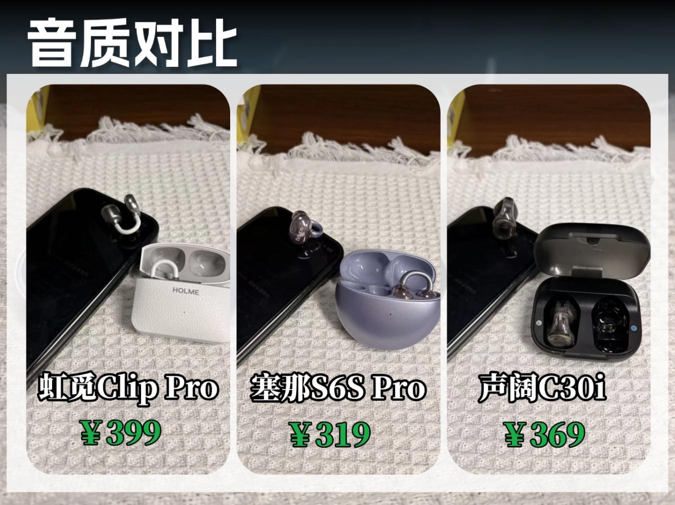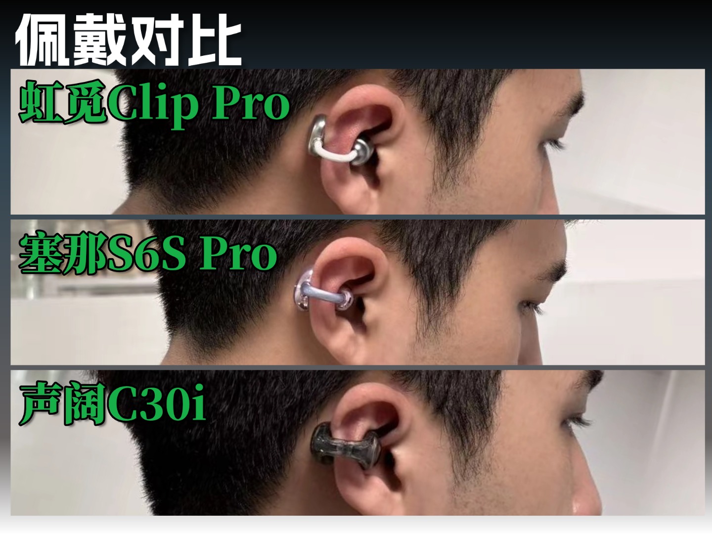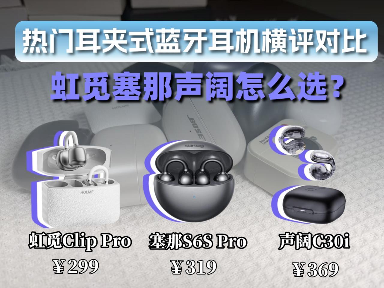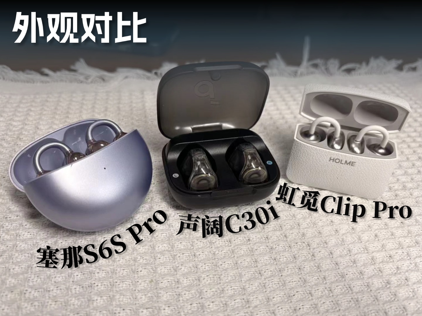 最近有个朋友私信我,说耳夹式耳机挑得特别费劲,选便宜的又怕不好用;贵点的又怕溢价太高,花了钱却没买到实用的功能。其实不止他这样,我刚做数码博主测评这类耳机时,也是试了好多款才知道耳夹式耳机该怎么选。所以我这次特意从最近卖得火、价格也不算贵的款式里,挑了三款来做对比,分别是 299 元的虹觅 Clip Pro、299 元的塞那 S6S Pro,还有 369 元的声阔 C30i。我这次从大家平时最在意的音质和佩戴等方面入手给大家来一期横评,看看哪款是真的值得买,相信看完我这份实测,说不定心里就有谱了。