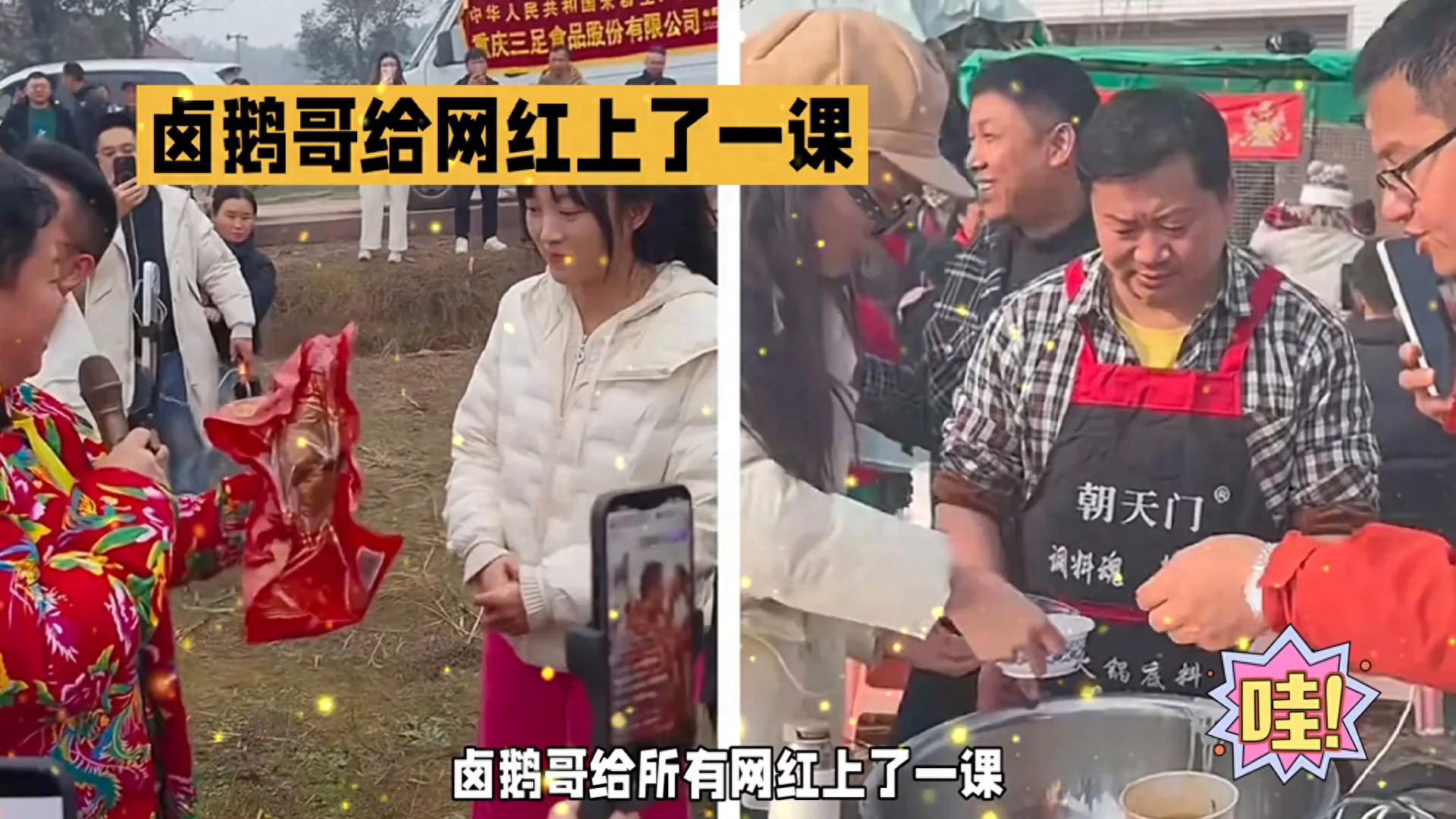 卤鹅哥给所有网红上了一课,你可以去蹭流量,但是该干的事一件不少干。呆呆家的杀猪宴卤鹅哥也去了,但是他没有像其他网红那样着急忙慌的摆拍直播,生怕错过了这破天的流量。