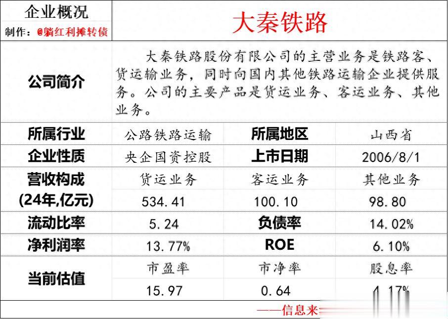今天来聊一家知名的大型央企硬资产公司——大秦铁路~