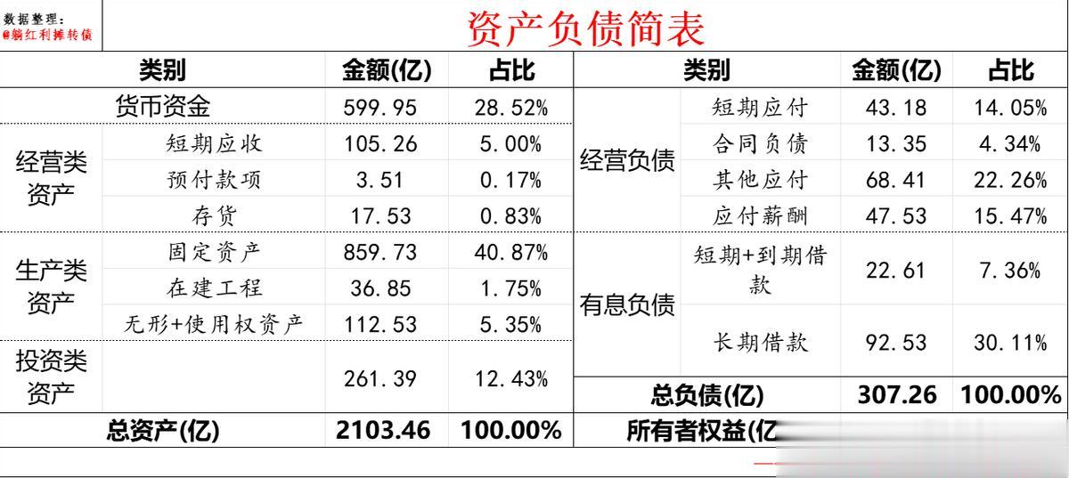 2、2025年中报的资产负债简表:
