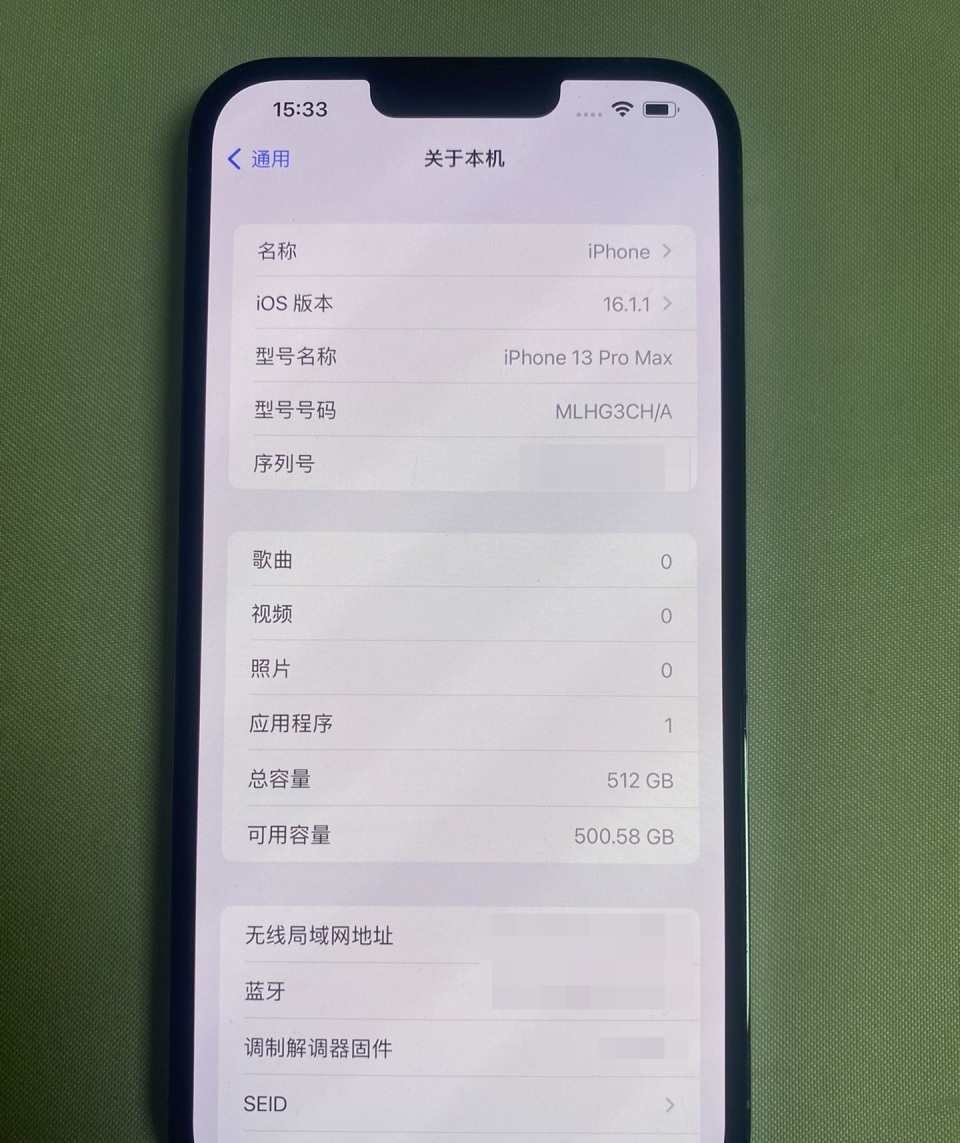 通过设置→通用→关于本机的信息来看,这台苹果13 Pro Max 确实是属于国行版本的,内存也是 512GB 的,完全无法看不出有什么问题;