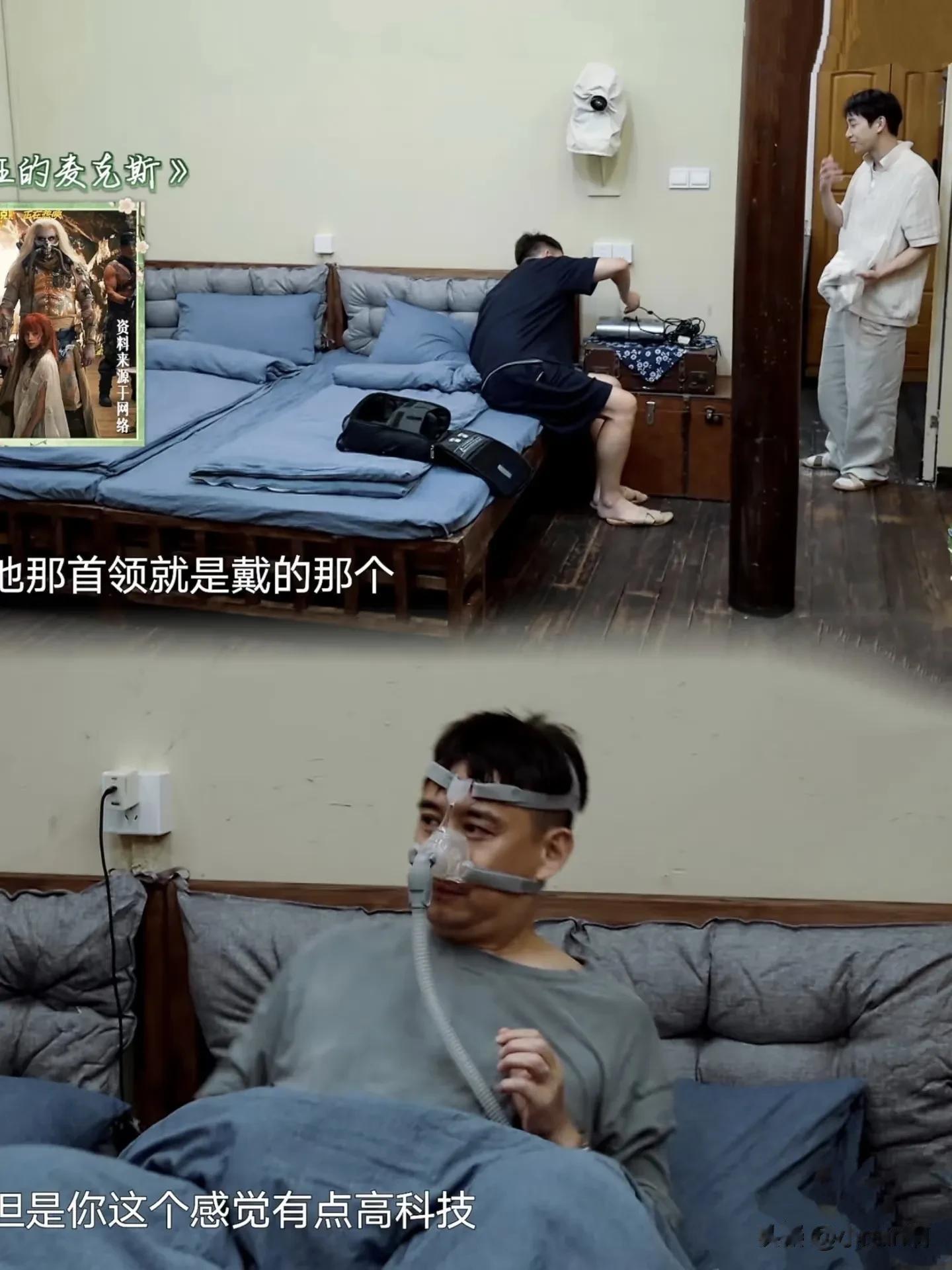 大家都睡一起,打鼾真的不可避免。往季黄老师打鼾还不是很严重,这季直接戴上了打鼾面具。