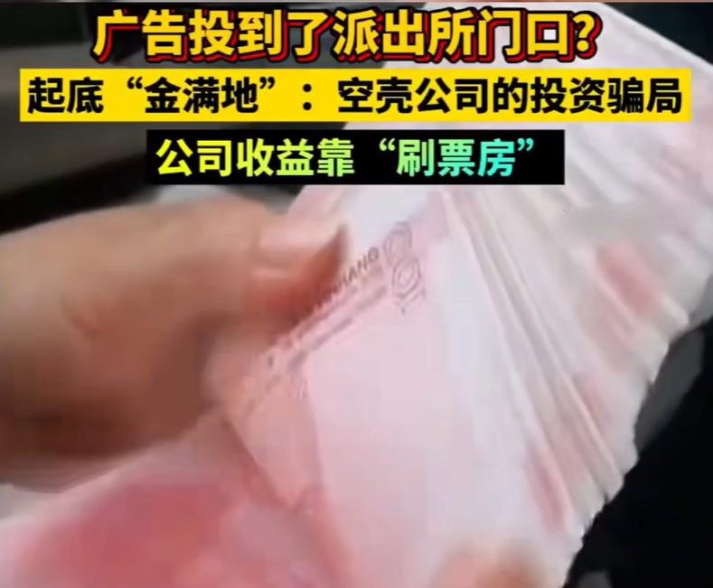 一、 离谱的收益:巴菲特看了都想拜师12月30日,长沙蓉园派出所门口的一块电子屏火了。 一家名为“金满地”的公司在上面疯狂刷屏:电影投资日收益0.7%,年化收益252%,拉人头还有13%的返利。