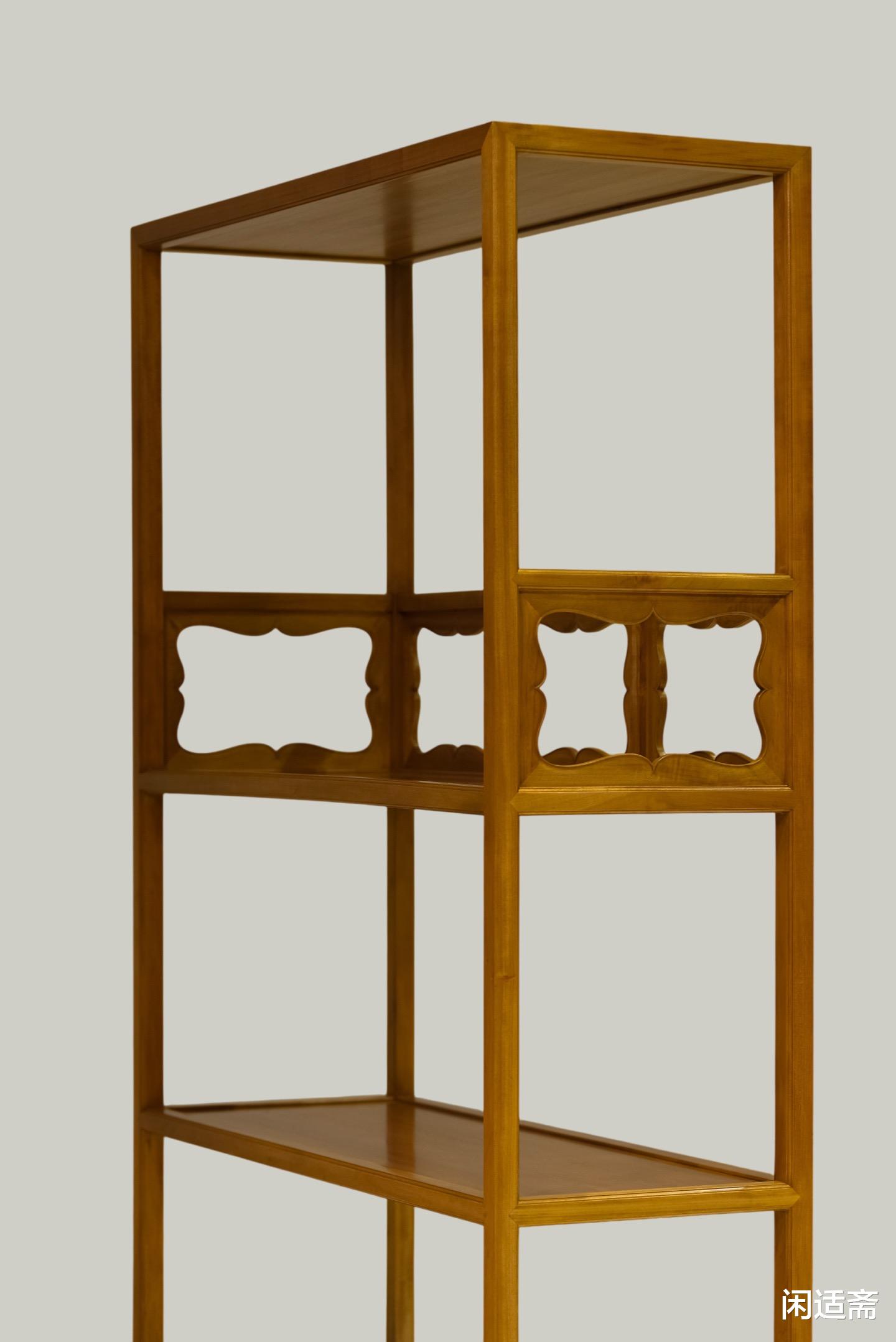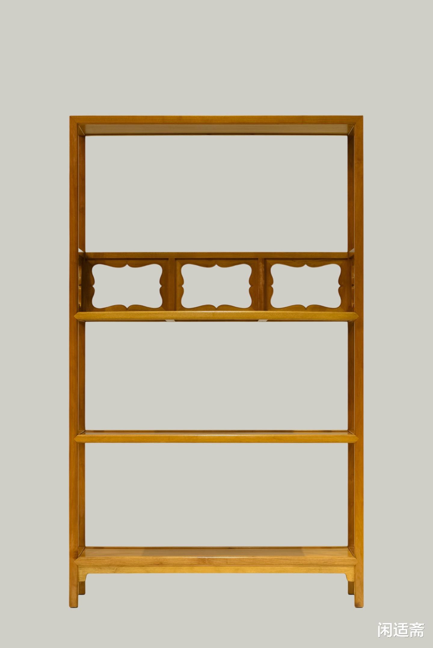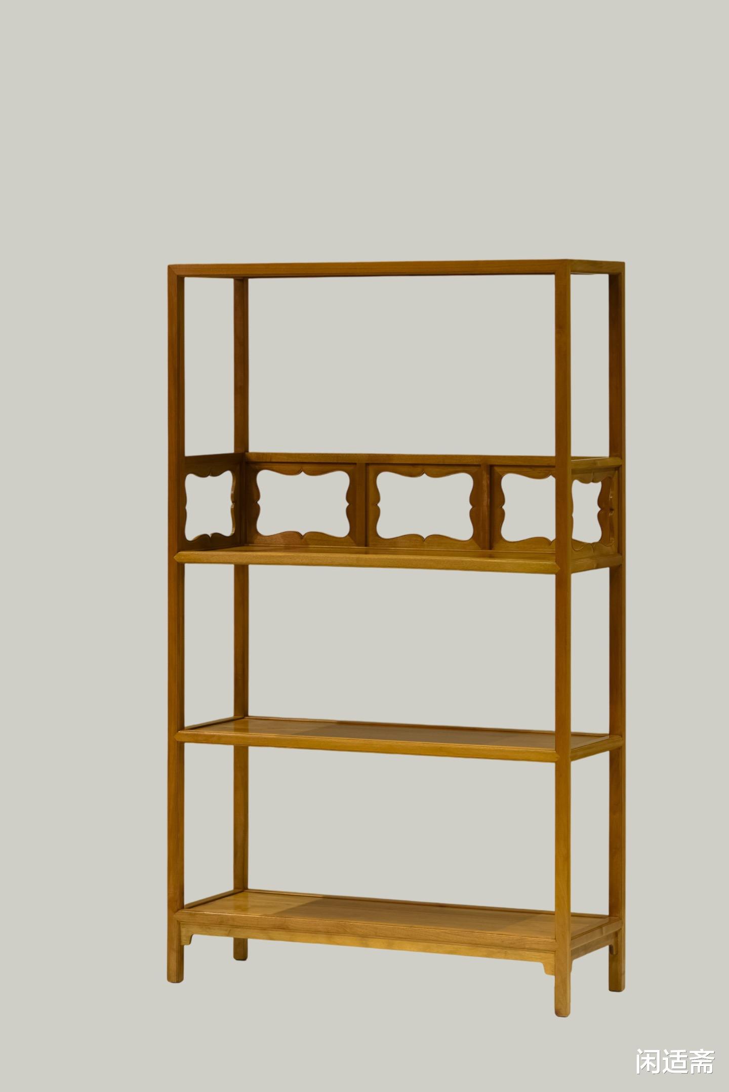 三层架格设计,分区合理,可按需收纳书籍、典籍、文房四宝、摆件等,既能妥善储珍,又能清晰陈列,让文房物件各归其位,尽显井然有序的文人生活美学。整体疏朗通透造型,既规避了实木家具的厚重感,又彰显了文人家具“简约内敛、空明雅致”的核心特质,静置文房一隅,既能满足储书需求,又能点缀空间格调,与笔墨纸砚相映成趣。