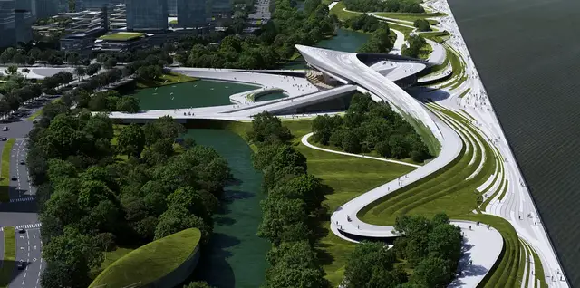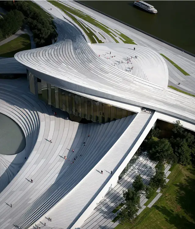 建筑与景观之间的界限被有意模糊,光线、风声与水汽自由穿行其中,使得每一处转折都可能带来全新的视觉体验——或面对江流,或凝视都市天际,又或是与某件艺术品不期而遇。