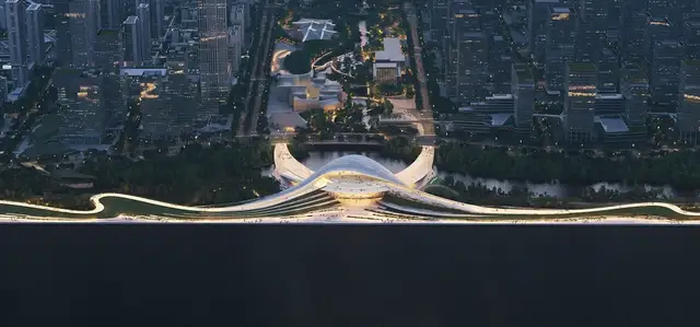 在杭州萧山区,斯诺赫塔建筑事务所(Snøhetta)赢得了钱塘湾美术馆国际竞赛。这座1.8万平方米美术馆,不仅是杭州未来总部基地的文化新地标,更成为连接都市与水域的公共门户。