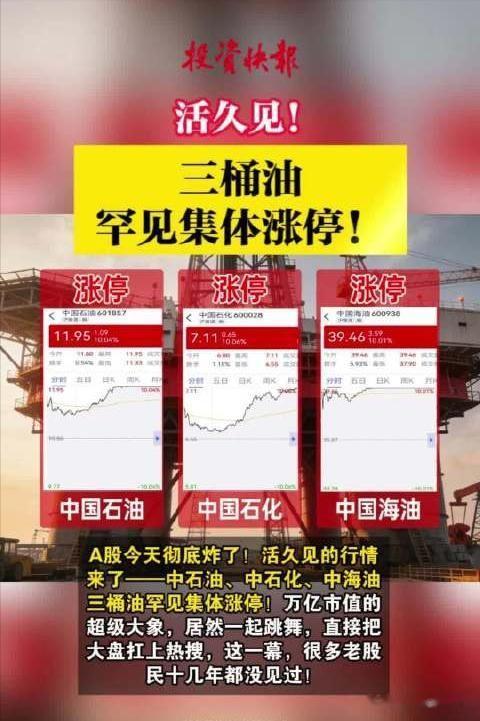 但是现实从来不会跟着谎言走,就在美媒大放厥词的同一天,A股用最直接的方式,狠狠打了它们的脸:中石油、中石化、中海油三桶油集体涨停。
