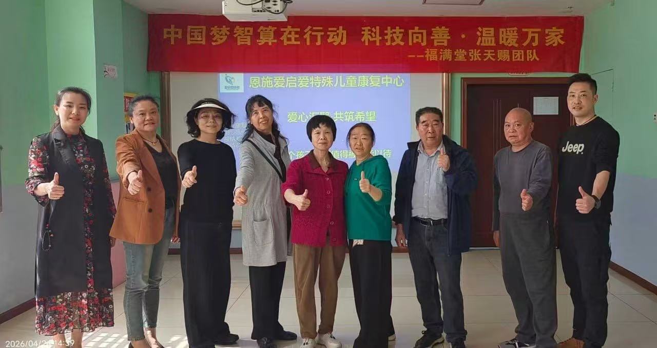 2026年4月,春风拂过恩施的山山水水。福满堂张天赐团队,带着“中国梦智算在行动,科技向善,温暖万家”的初心,走进了爱启爱特殊儿童康复中心。这次公益行动的组织人,是一位心细如发、满腔热忱的女性——王居霞。她没有声张,没有大张旗鼓,而是默默地带着团队,把一份份实实在在的温暖送到了孩子们的手中。