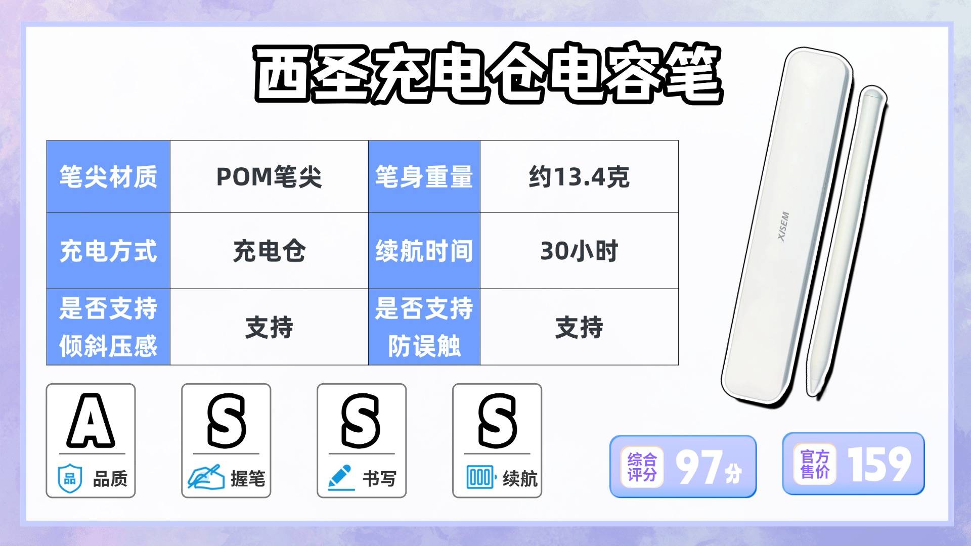 整体来看,如果你的需求集中在:书写顺滑、握持舒适、续航可靠,那么这款西圣带充电仓的电容笔基本可以“一次到位”。它的整体体验完整度很高,在同价位产品里属于非常稳妥的选择。