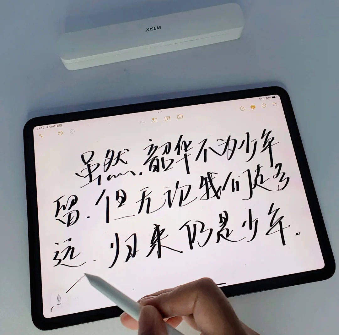 书写体验方面,西圣采用了与 Apple Pencil 相同规格的POM笔尖,落笔准确、线条干净,整体顺滑度非常接近原装;同时支持倾斜压感和全屏防误触,可通过轻微调整书写角度实现笔触粗细变化,画草图、做笔记、写细字都能保持较高精度。