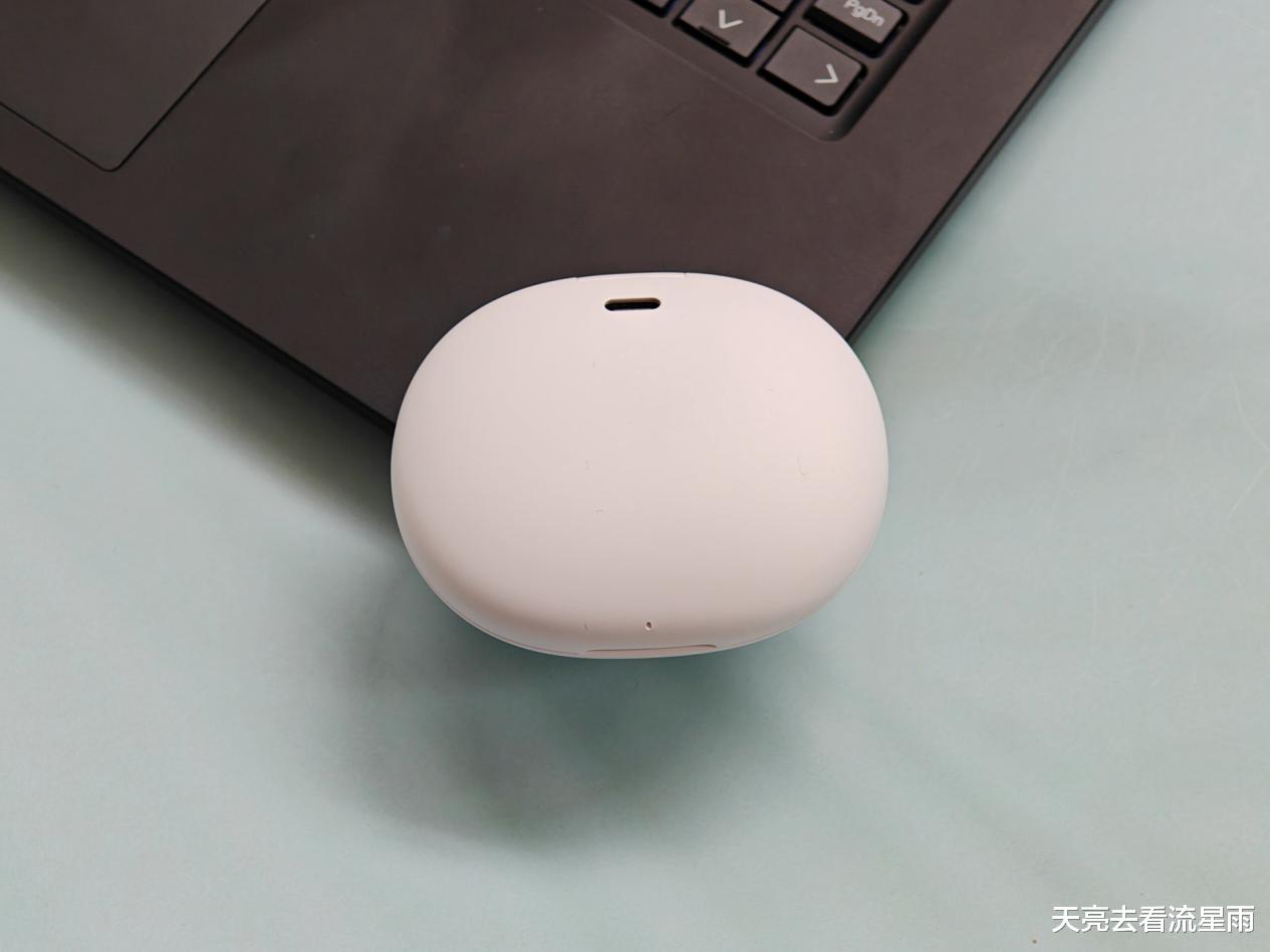 西圣Olite2的充电仓扁圆形设计,这个厚度是我用过的耳机充电仓中最薄的了。外壳材质虽然是塑料的,但是表面也有磨砂处理,触感舒适不打滑,Type-C的充电接口放置在了底部。