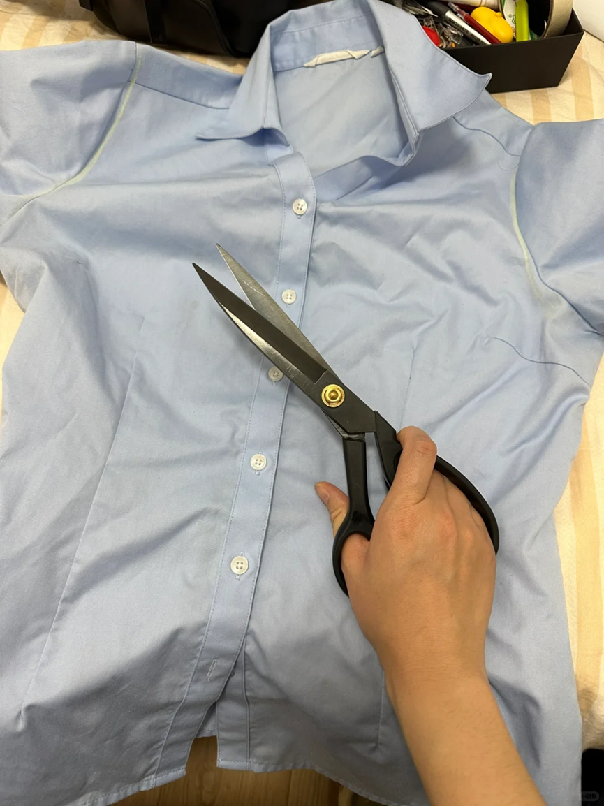 大家只需要准备好一件衬衫,最好是白色的,这样会比较百搭,然后裁剪出合适的长度。