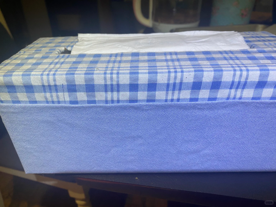 做好之后还可以在纸巾盒上面再进行一下简单的装饰,另外还可以利用同样的方法来制作储物盒。