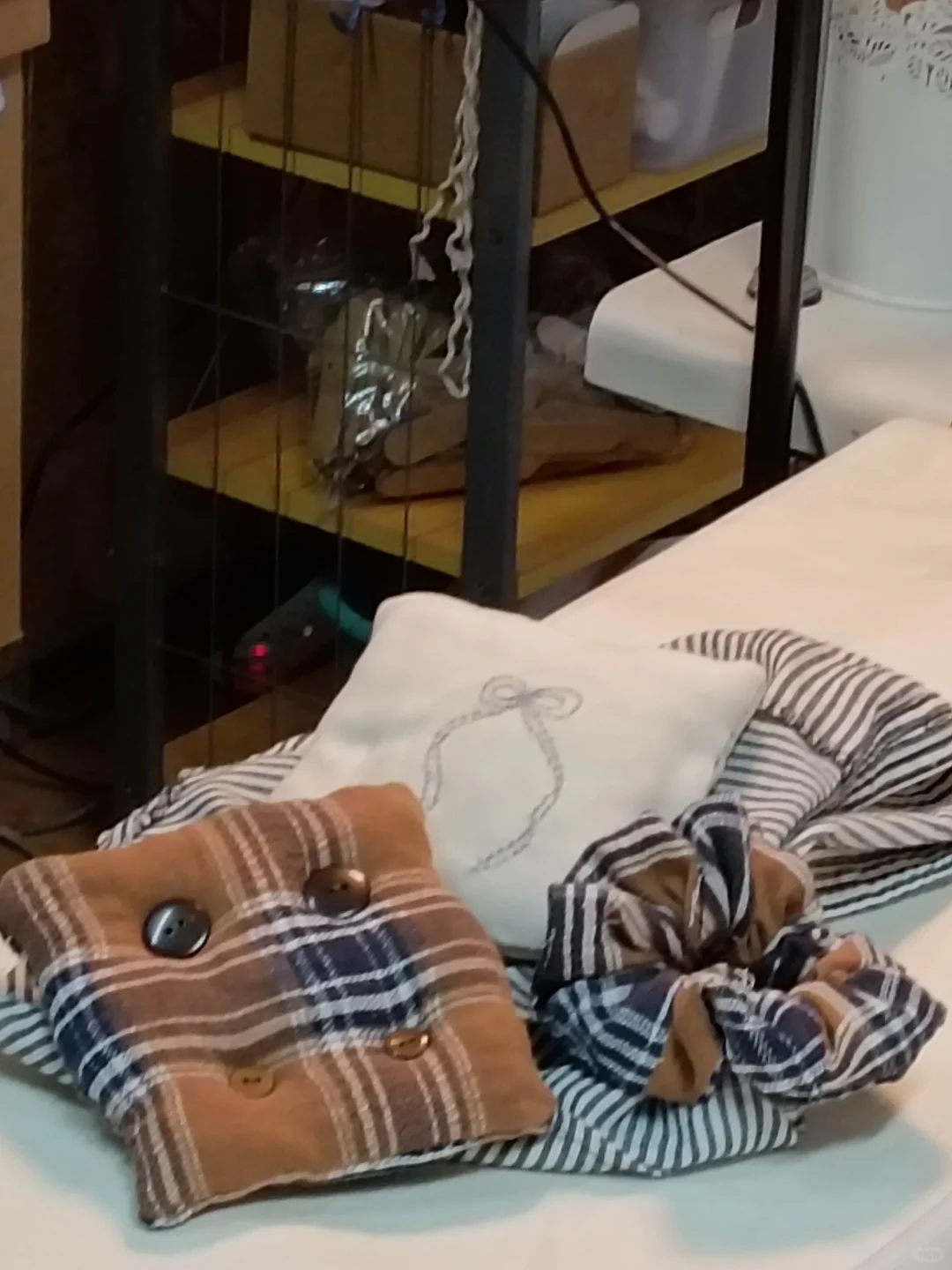 裁剪好布条之后,只需要再另外准备一根小的皮筋,将布条缝在皮筋上面,这样就变成了一个新的大肠发圈。