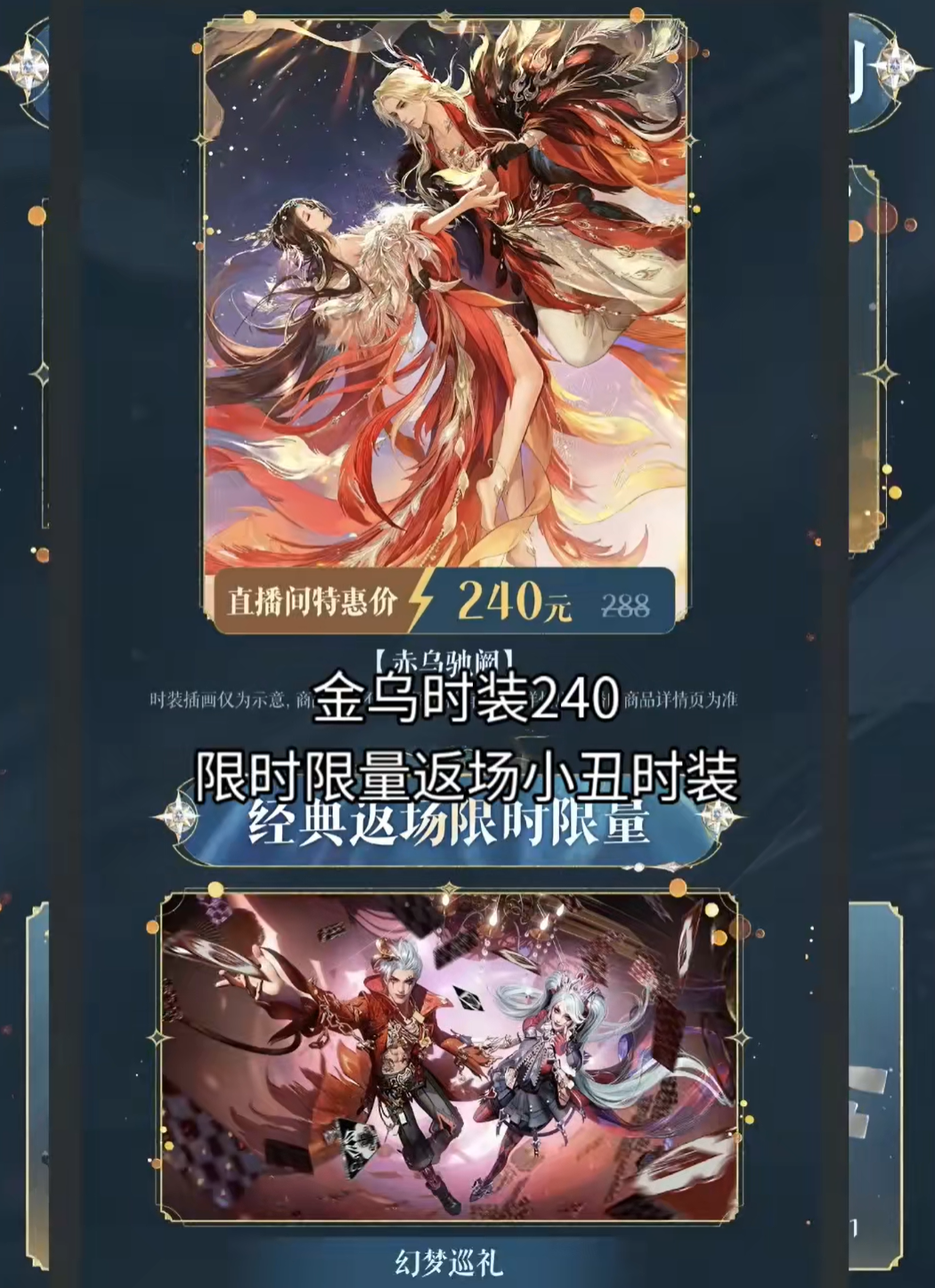 其直播定价策略堪称“价格屠夫”:1毛钱可购买价值6元的游戏货币“纹玉”,相当于0.17折,上线即被抢空;新推出的金乌主题时装原价288元,叠加直播间首单半价优惠后仅需120元,降幅超50%;即便是以往稀缺的限定外观如小丑服、妲己时装,也以折扣价返场,精准满足老玩家的收藏需求。