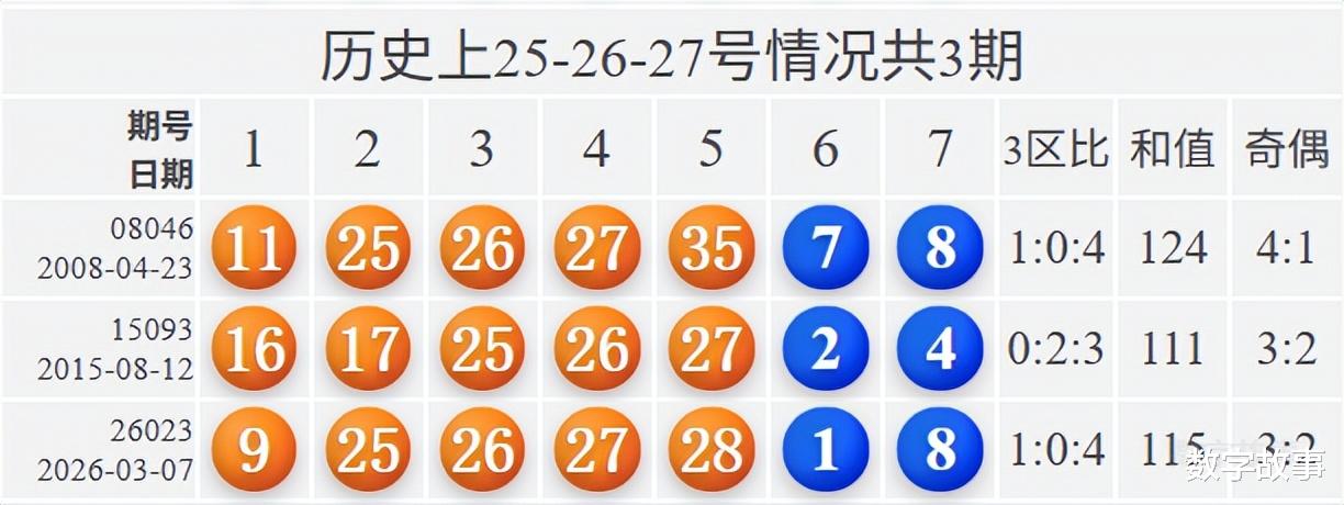 大乐透前区号含25-26-27历史统计