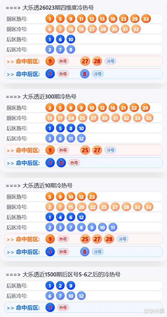 大乐透26023期开奖号码 VS 各冷热号