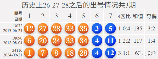 大乐透前区号含26-27-28历史统计