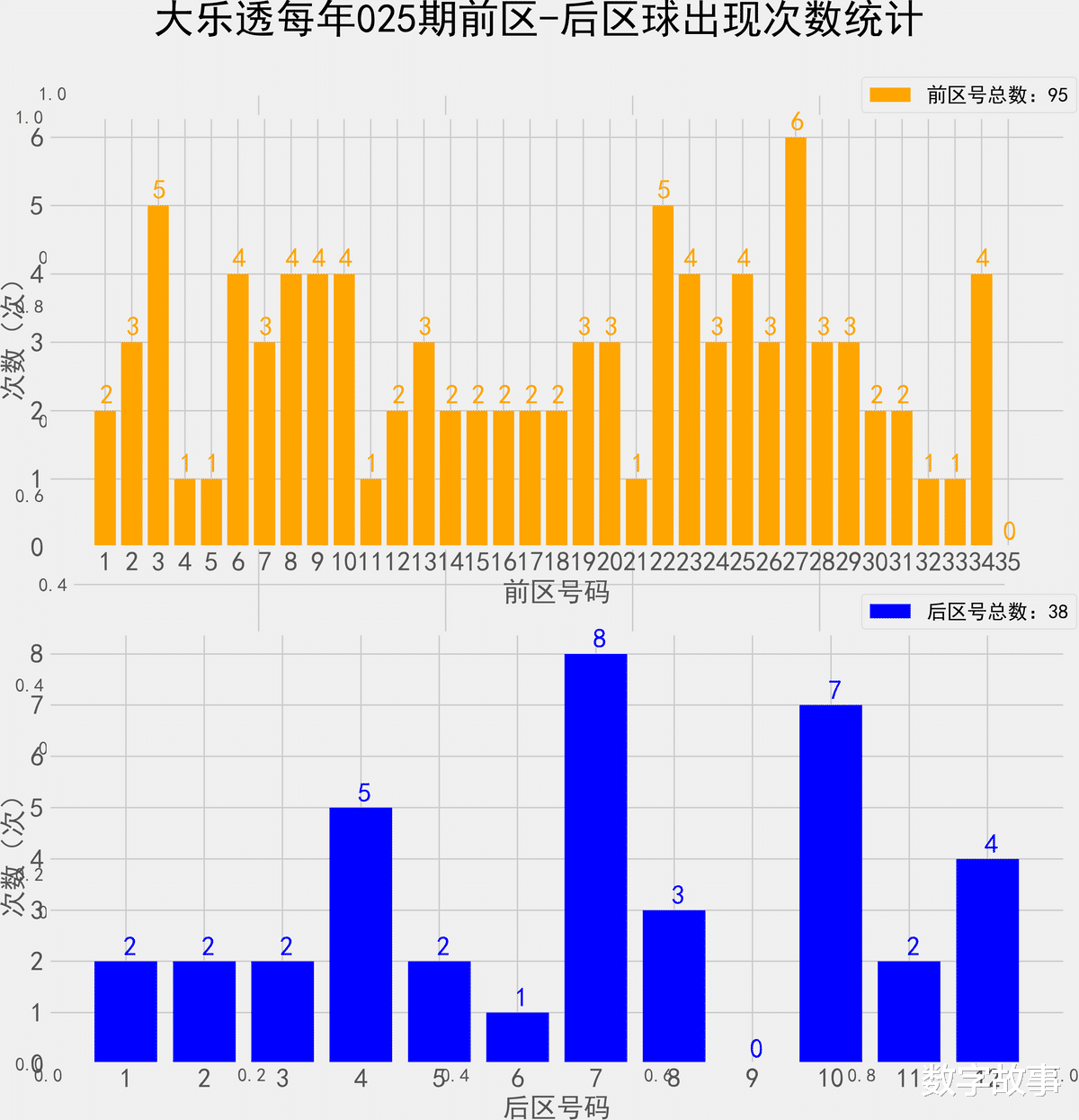 统计每年024期的样本数据: 95个前区号 38个后区号
