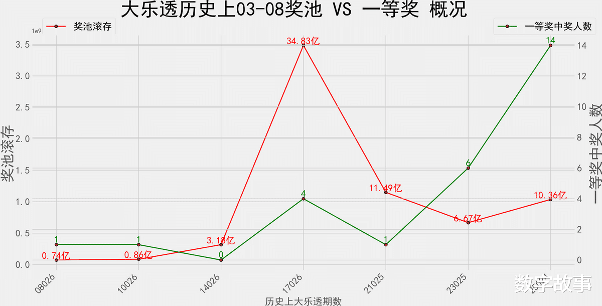 奖池滚存&一等奖数 走势图: