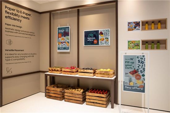 三星彩色电子纸(型号:EMDX)通过融合数字墨水与开创性的全彩电子纸技术,树立了节能数字标牌的新标杆。这种超低功耗、轻量且超薄的显示屏将传统纸质体验数字化,在提供企业所需的高能见度标识的同时,提供了一种更具环保意识的替代方案。