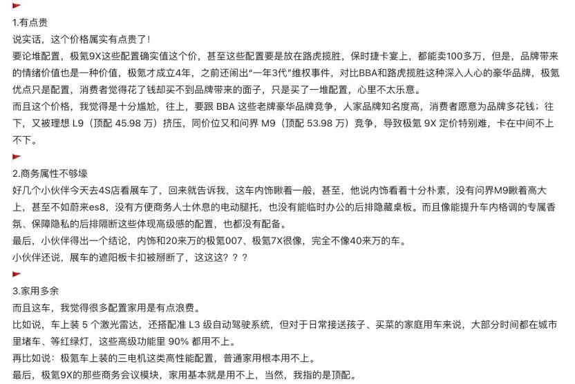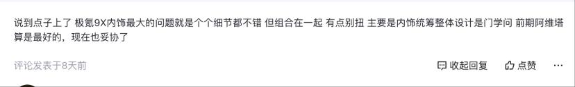 “极氪9X内饰最大的问题就是每个细节都不错,但组合在一起,有点别扭。”