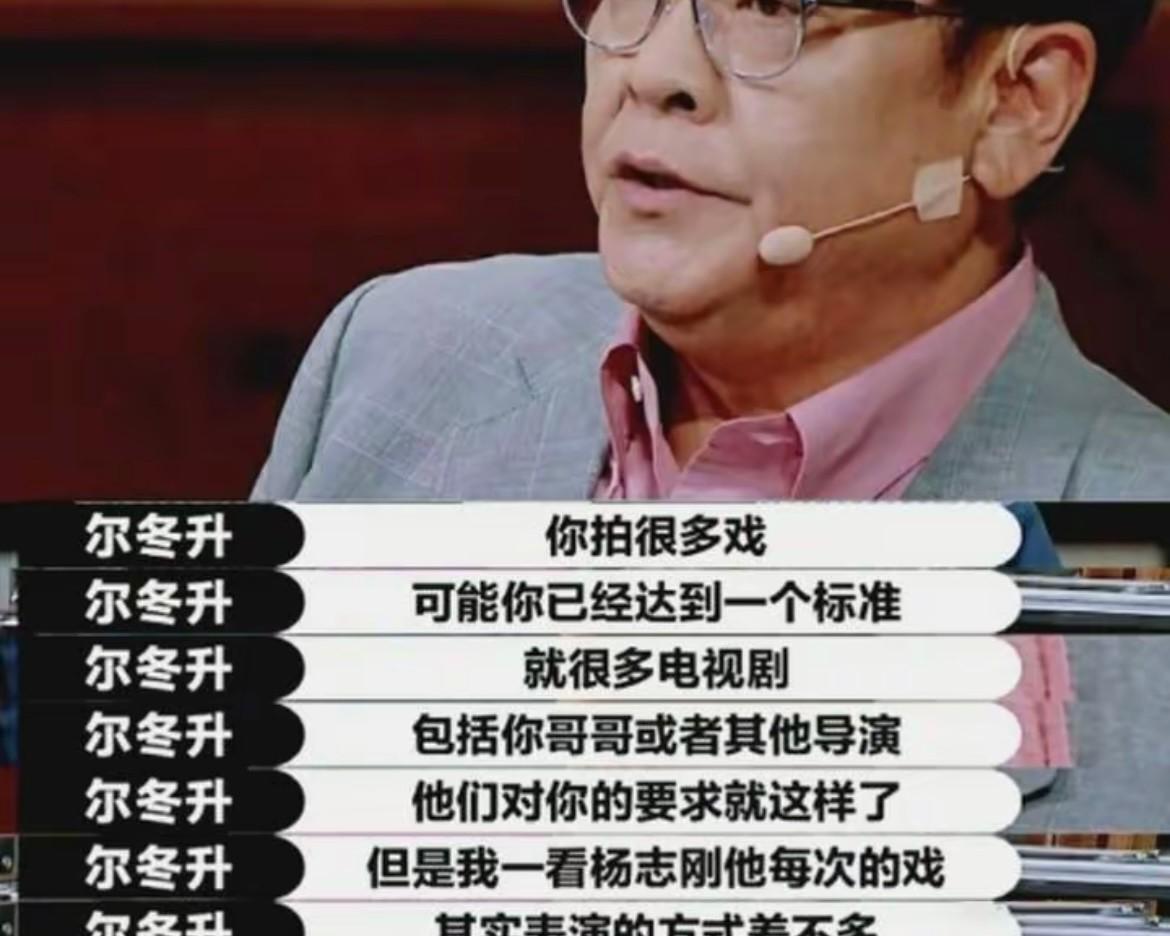 当杨志刚表演完以后,尔冬升导演开始面露严厉的点评他: