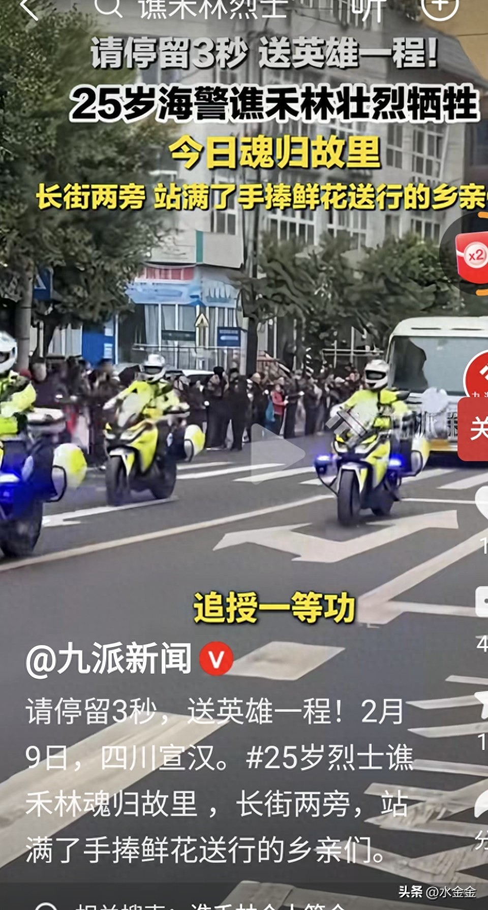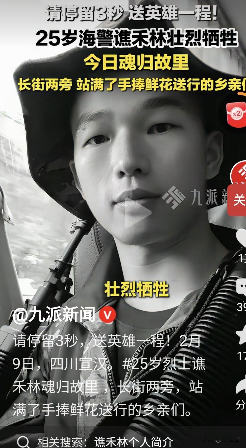 数万人自发站在长街两旁,手里捧着白菊,眼里含着泪,等着一个叫谯禾林的25岁海警回家。