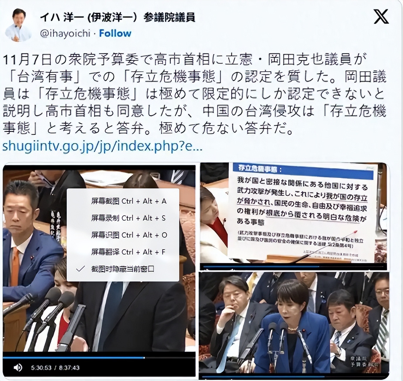 7日在日本议会上公开露骨提出所谓在“存亡危机事态”下日本将会武装干预,