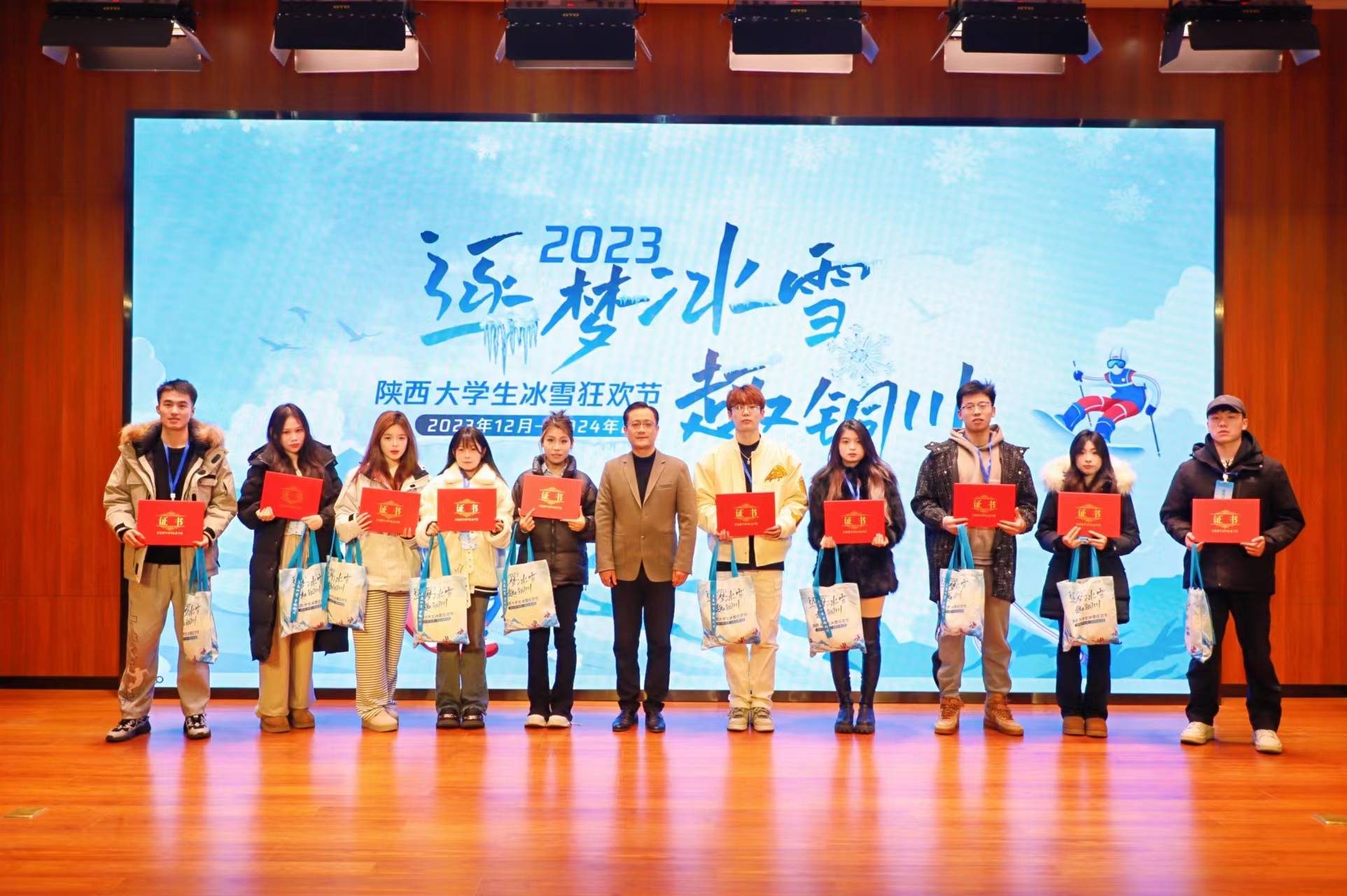 活动上,铜川市文化和旅游局副局长牛斌致欢迎词,铜川文旅推介大使重点介绍了铜川的文旅资源。随后,铜川市文化和旅游局给所有历经报名-选拔而来的陕西大学生网络达人们送上了精心准备的冰雪大礼包,并颁发了铜川冰雪旅游体验官证书。