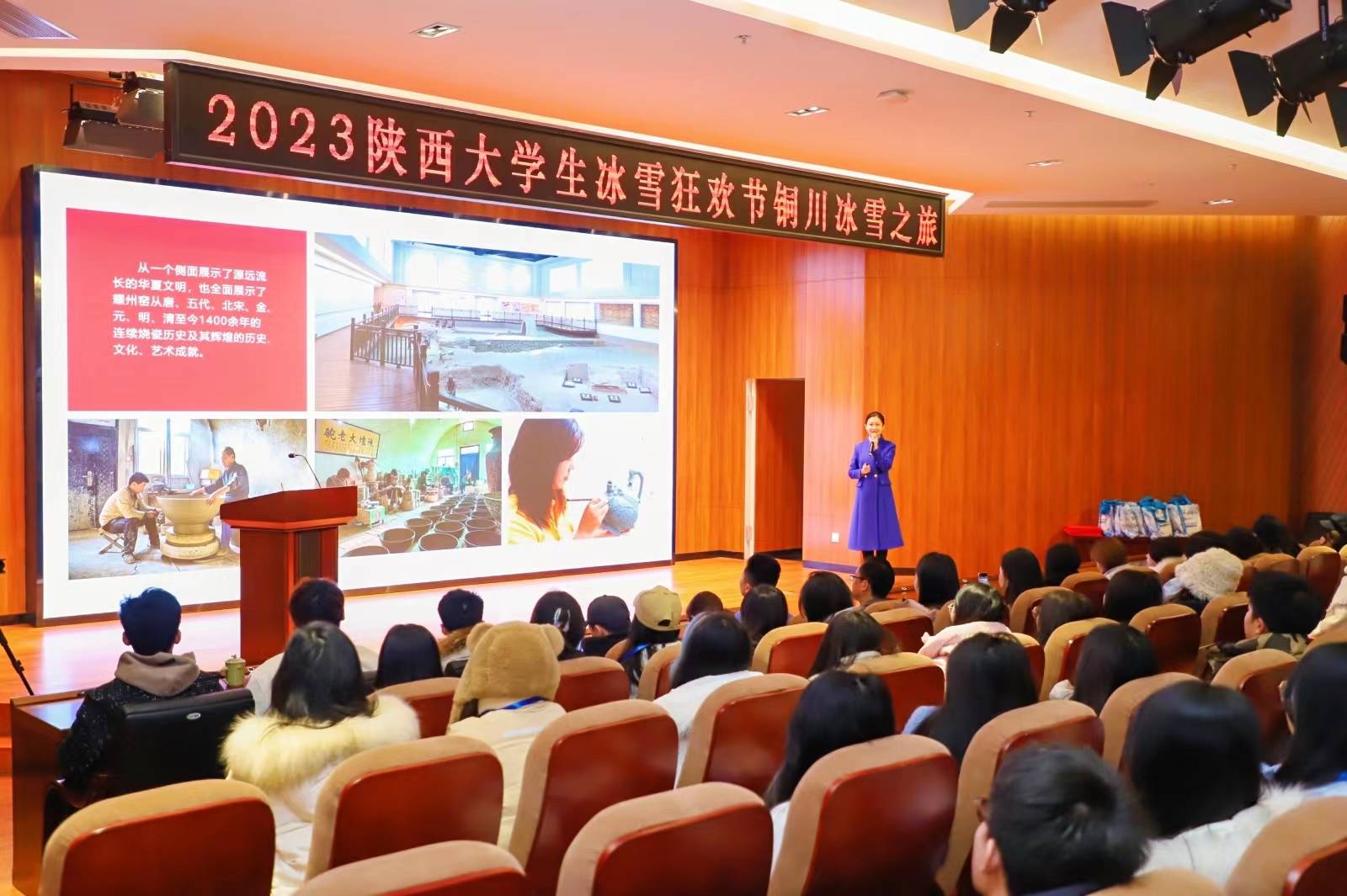 2023年12月30日上午,两辆满载百余名在陕就读大学生网络达人的专属冰雪旅游大巴由西安欢乐集结出发,抵达铜川。首站铜川博物馆馆藏丰富,是铜川接受爱国主义教育和文明熏陶的教育主阵地,随着陕西大学生网络达人们的到来,2023 陕西大学生冰雪狂欢节启动仪式在此举行。