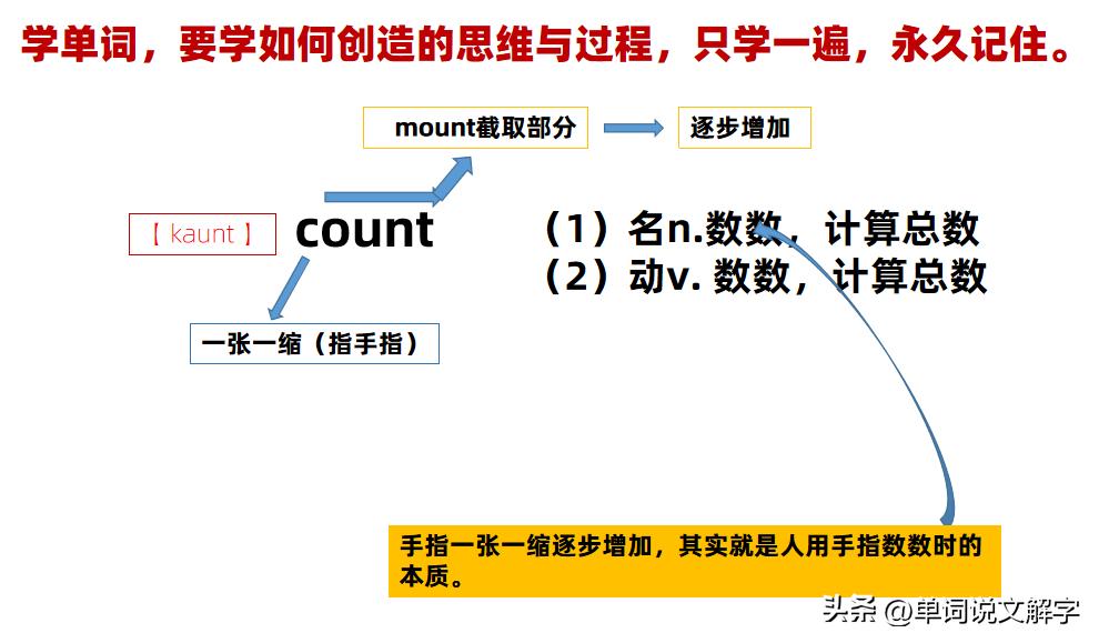 当然“数数、计数count”也是基于“mount”的“逐步增加”含义创造出来的!详细解说图如下: