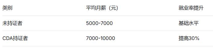 数据显示,持证者往往比未持证者薪资高出20-30%。例如,根据行业报告,CDA持证人在就业初期平均月薪比同龄人高1500-3000元,且晋升速度更快。下面是一个简表对比,展示持证与未持证的中专毕业生在数据分析岗位的薪资差异(数据来源于权威招聘平台统计):