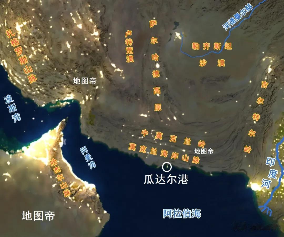 瓜达尔港位于巴基斯坦西南部沿海,距伊朗边境线约70千米,距伊朗恰巴哈尔港约160千米,纬度是北纬25°06′41″。瓜达尔港本来只是个小渔村,因为距波斯湾石油天然气产区近,战略地位凸显。