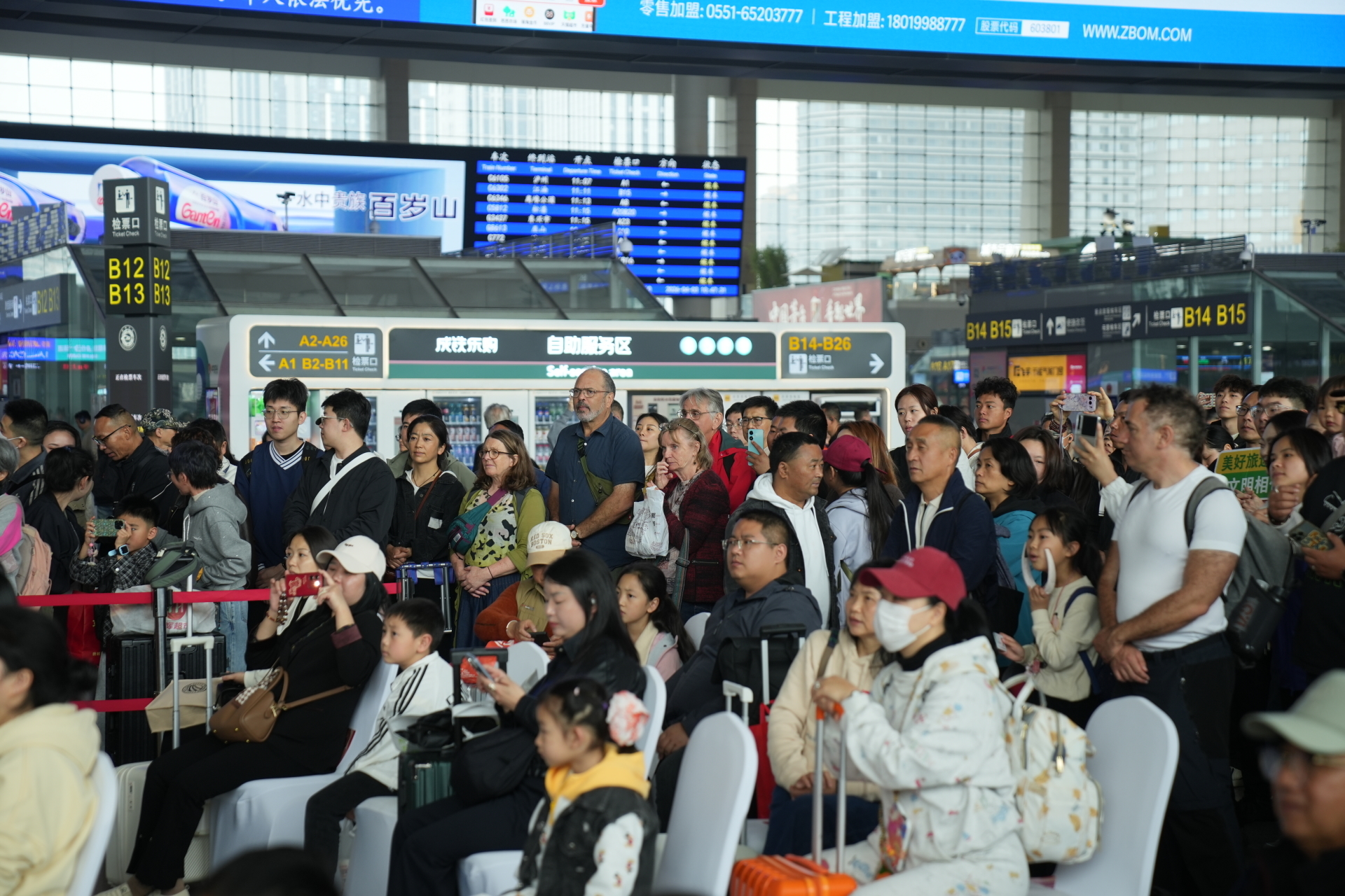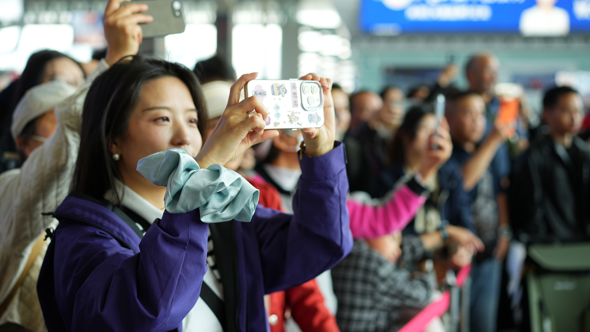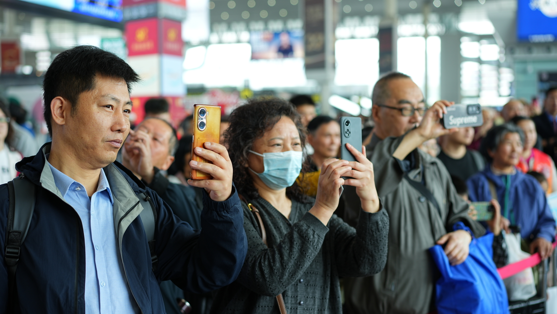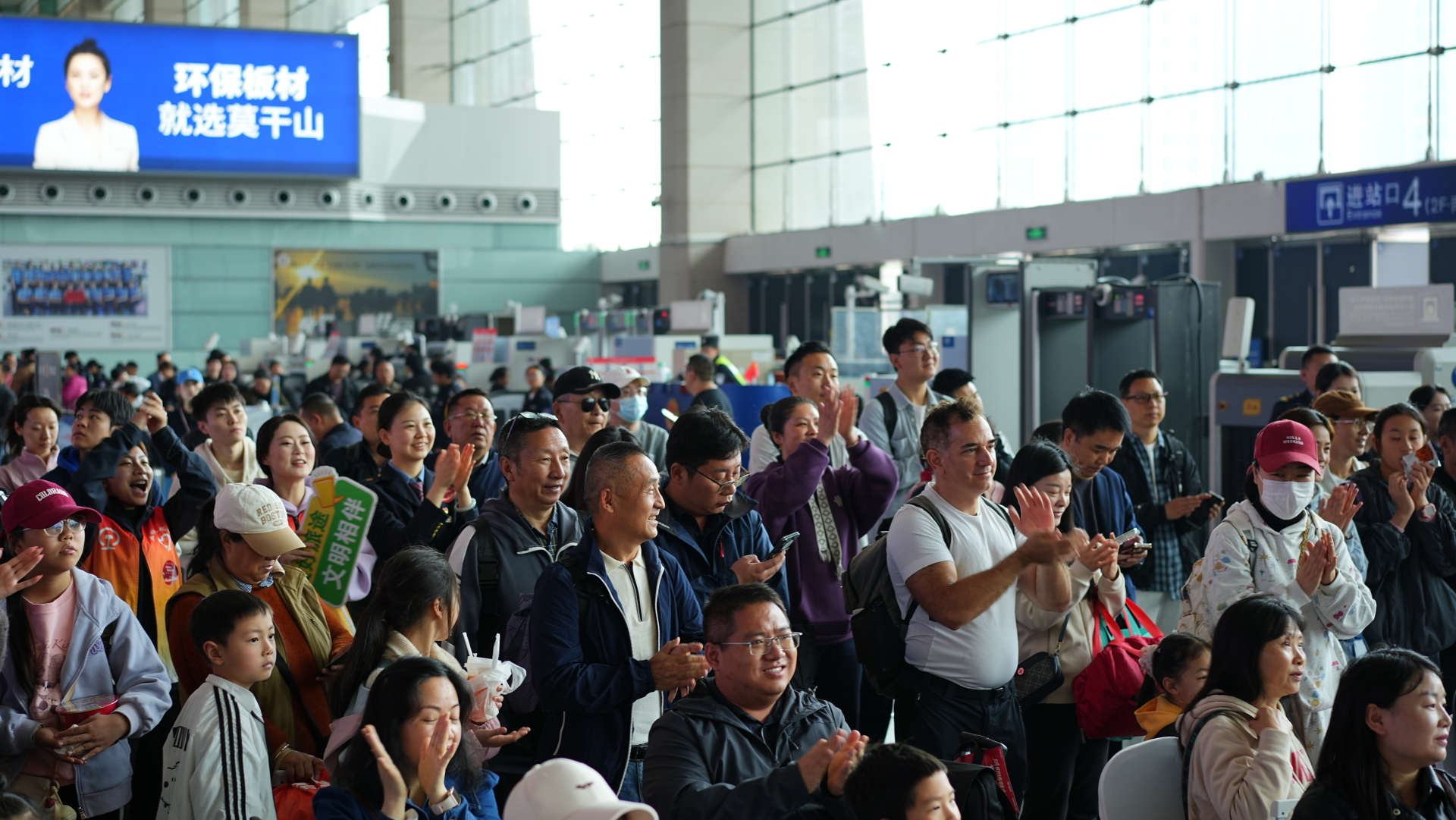 随后,《唱支山歌给党听》《我们走在大路上》《走进新时代》《灯火里的中国》《钢铁洪流进行曲》等经典曲目轮番奏响。悠扬旋律与灵动节奏,让原本行色匆匆的旅客纷纷放慢脚步,有人举起手机定格美好瞬间,有人闭目沉浸其中,还有家长抱着孩子轻声哼唱。耳熟能详的旋律、震撼人心的音效,将现场氛围一次次推向高潮,掌声、欢呼声此起彼伏。